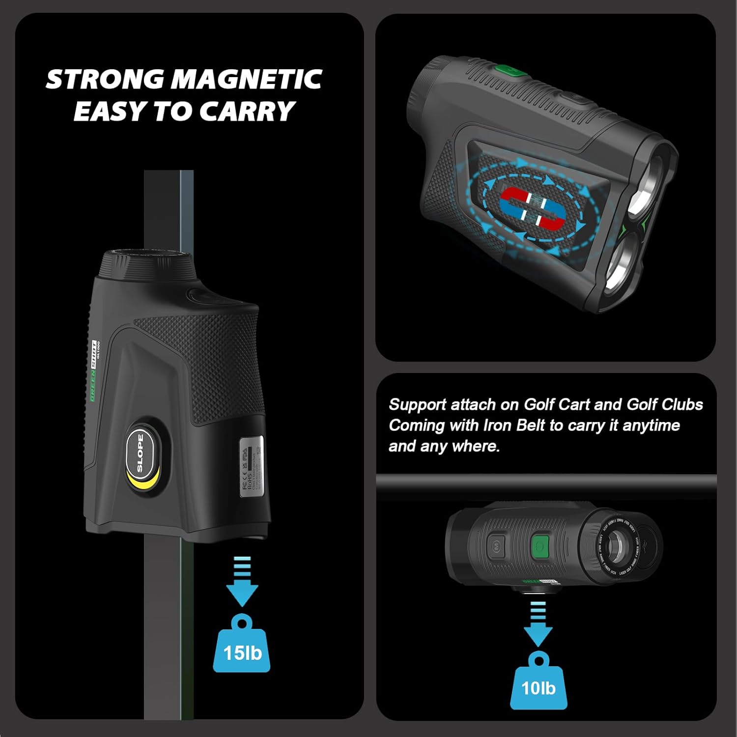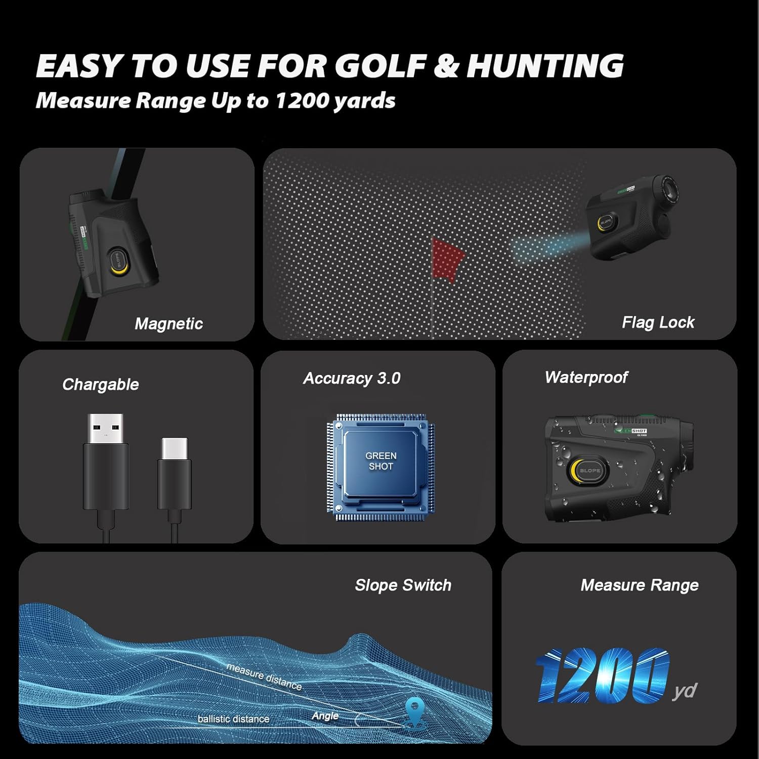 GL1000 Range Finder Golf with Slope Switch, 1200 Yards Rechargeable Range Finder for Hunter, 7X Magnification Golf Laser Range Finder, Magnetic Strip, Flag Pole Locking with Pulse Vibration