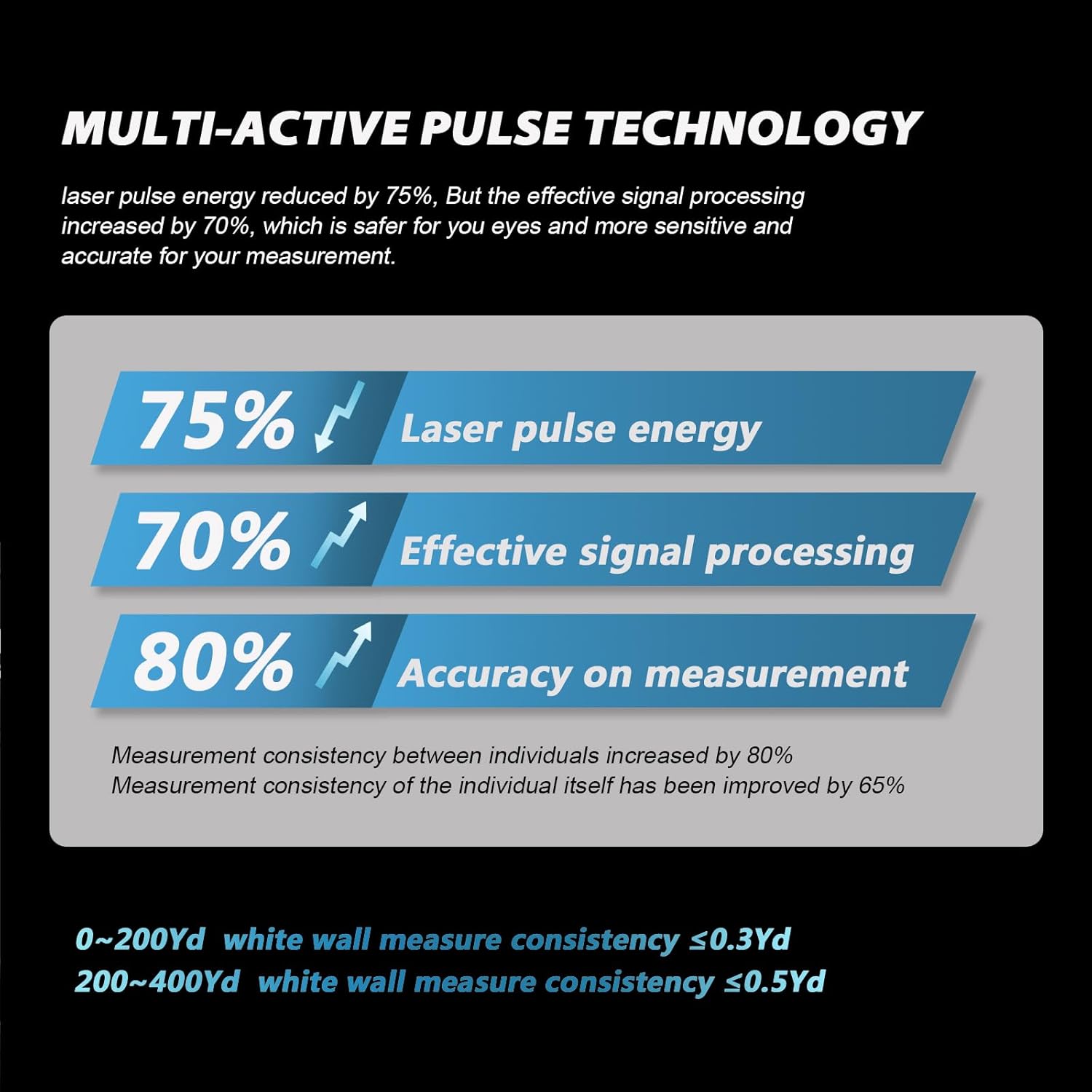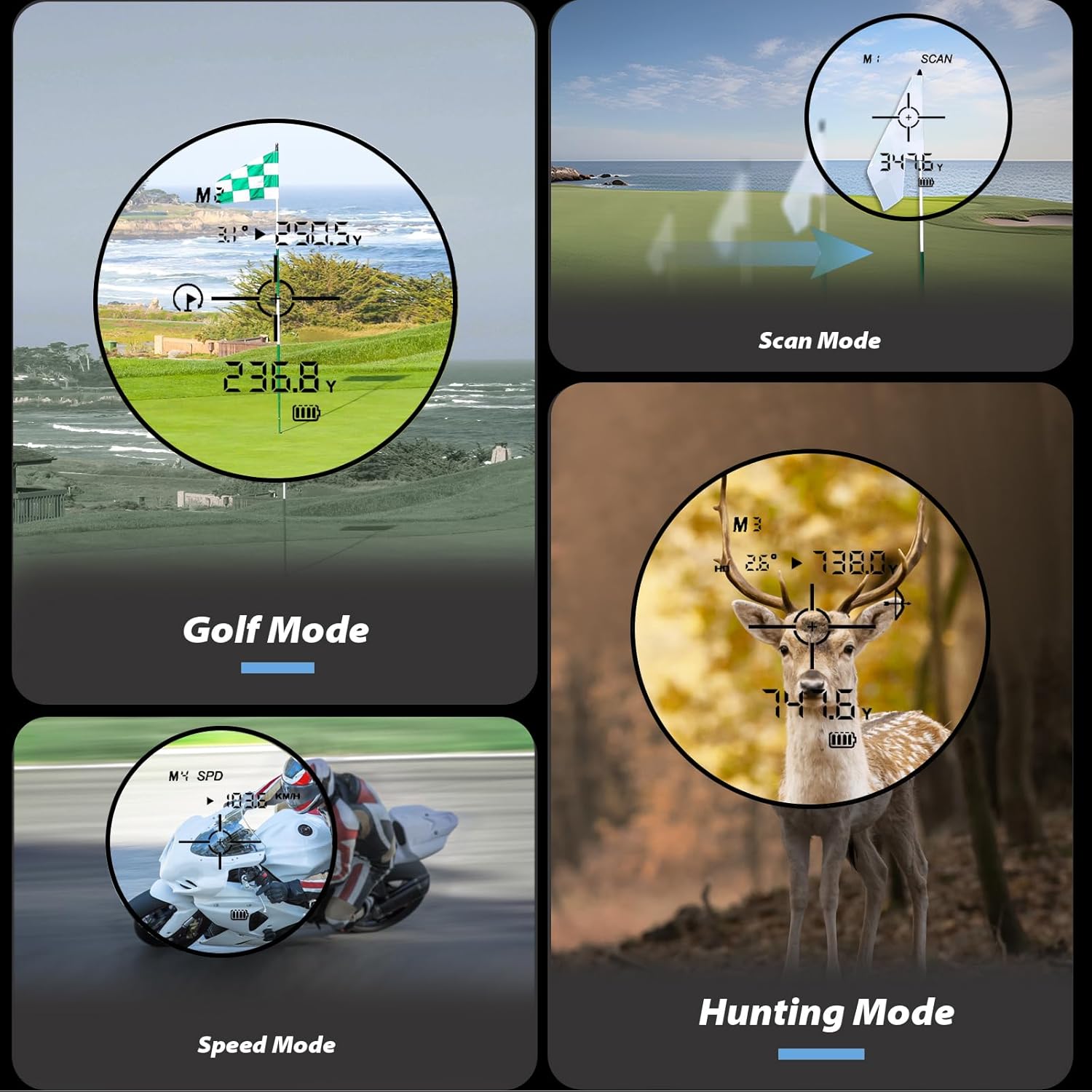 - 0.1s Fast Reaction on Flag Lock: Enhancing your precision further, this range finder features flag lock technology with vibration alerts. The 7X magnification and LCD display ensure clear visibility of your target, while the four-mode switch allows seamless transitions between scan mode, golf mode, shooting mode and speed mode