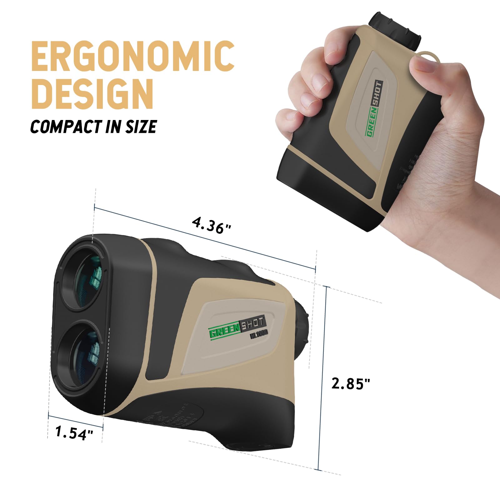 - 🏹【Compact And Ergonomic Design】Ergonomic design is perfect for holding. Measuring at a mere 4.36"L*2.85"W*1.54"H and weight just 0.66 pound, compact, lightweight, built to endure. The rangefinder hunting boasts exceptional portability without compromising on performance. Its waterproof, dustproof, and rugged design makes it a dependable companion for golfing, shooting, bow, archery, and hunting adventures