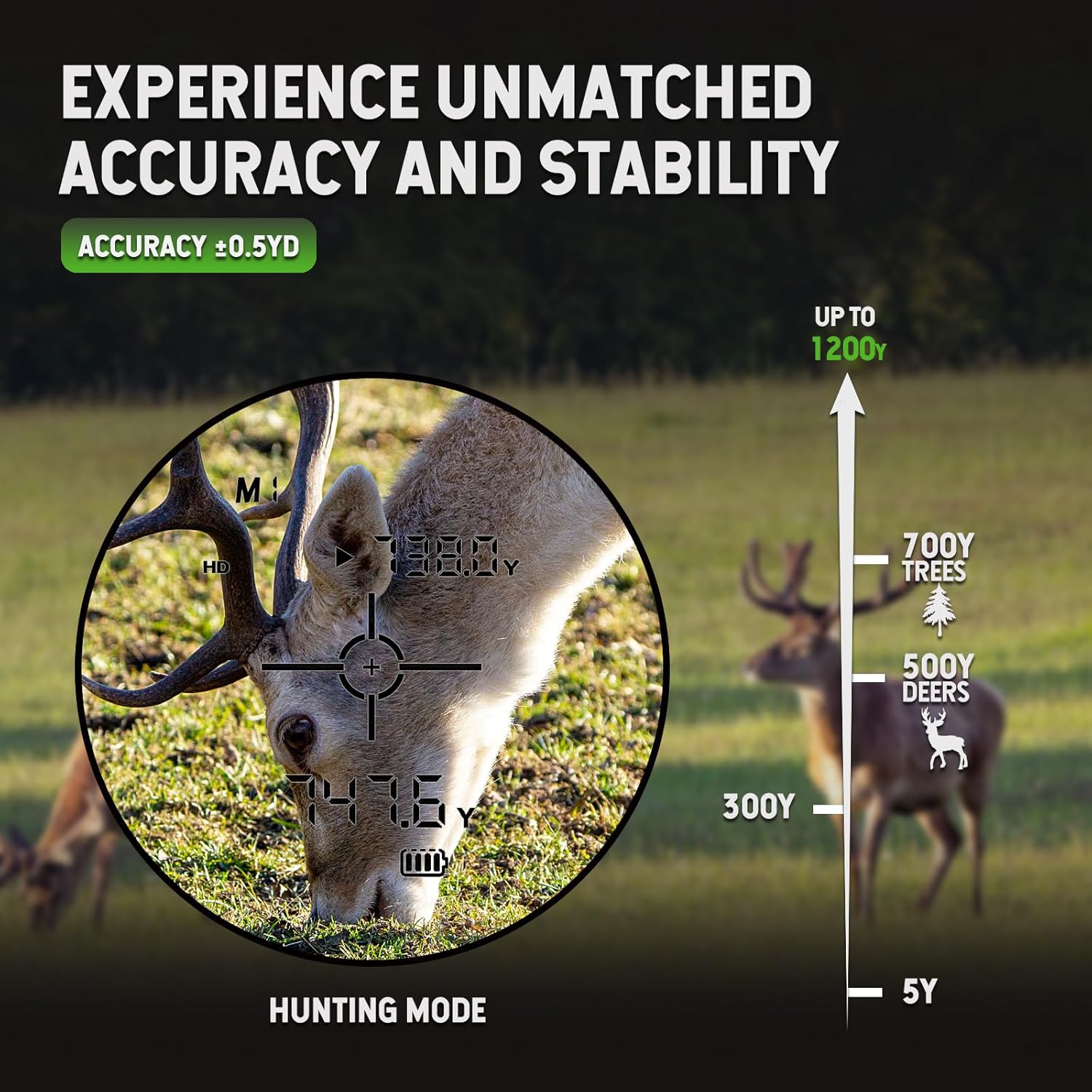 - 🏹【High Accuracy Measurement】Our laser rangefinder is equipped with 6x magnification, range 5-1200 yards, accuracy +/- 1 yard and switch between meters and yards at will. You can rotate the lens to focus quickly, press the button and the measurement will be displayed in 1 seconds. Which ensures clear and quick reading